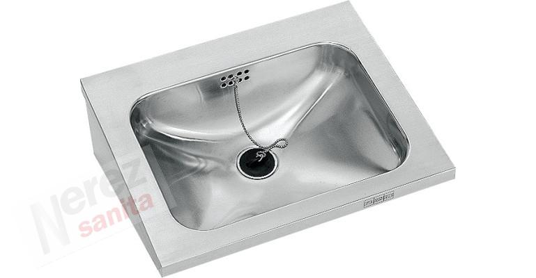 Umyvadlo k monáži na stěnu, nerezová ocel s jemným matným povrchem, tloušťka materiálu 1 mm, bezešvý svařovaný vnitřní díl o rozměrech 500x400x200 mm, obdélníkový tvar, místo na baterii 70 mm, s přepadem, odtokový ventil 1 1/4 mm, středový odtok předsvařené montážní konzole, včetně vrutů a hmoždinek.